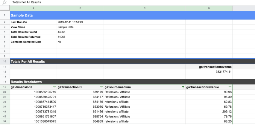 At this point, we summed all the transaction revenue/source/customer. Now that the data is prepared for Looker Studio, you can import the data directly to there.