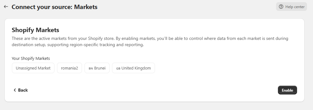 Once enabled, Littledata automatically stays in sync with your Shopify Markets setup — so when markets change in Shopify, your Littledata configuration updates automatically.